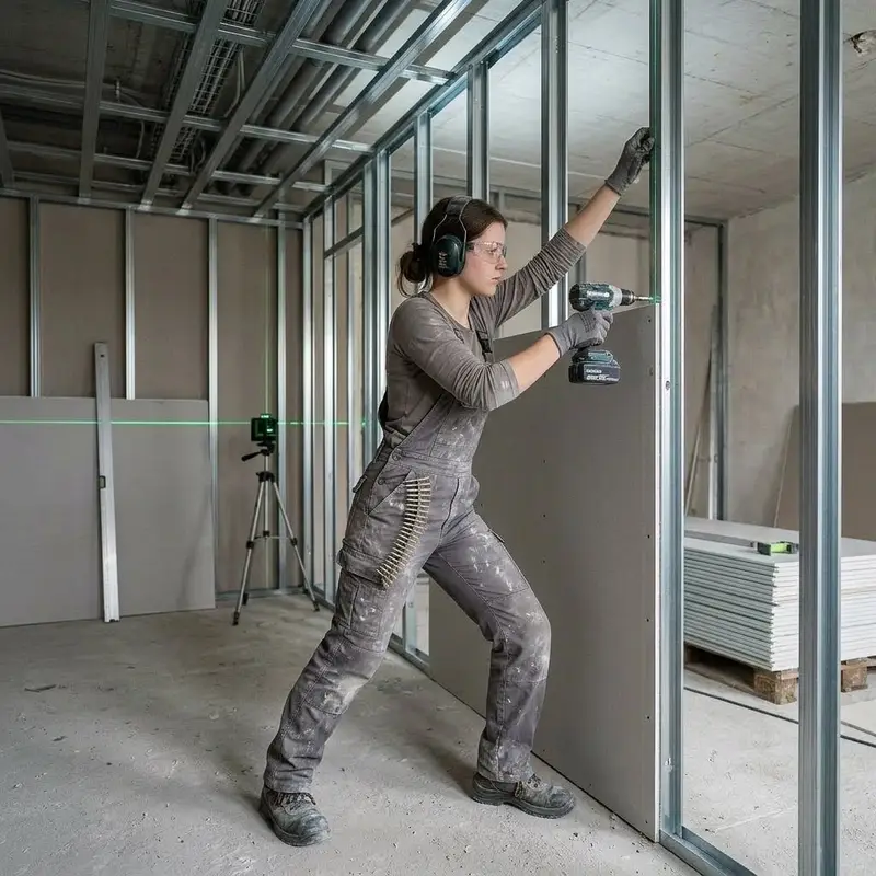 "description": "Du schraubst Metallprofile an Decke und Wand und befestigst Gipskartonplatten mit dem Akkuschrauber.",