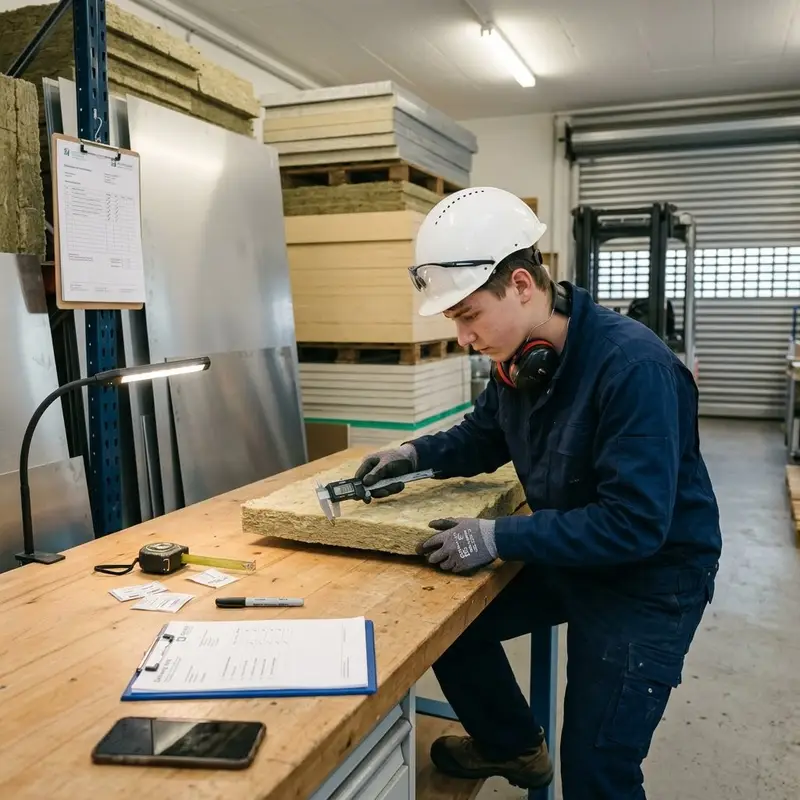 "description": "Du prüfst in der Werkstatt die gelieferten Dämmplatten und Bleche auf Schäden und misst ihre Stärke mit einem Messgerät.",