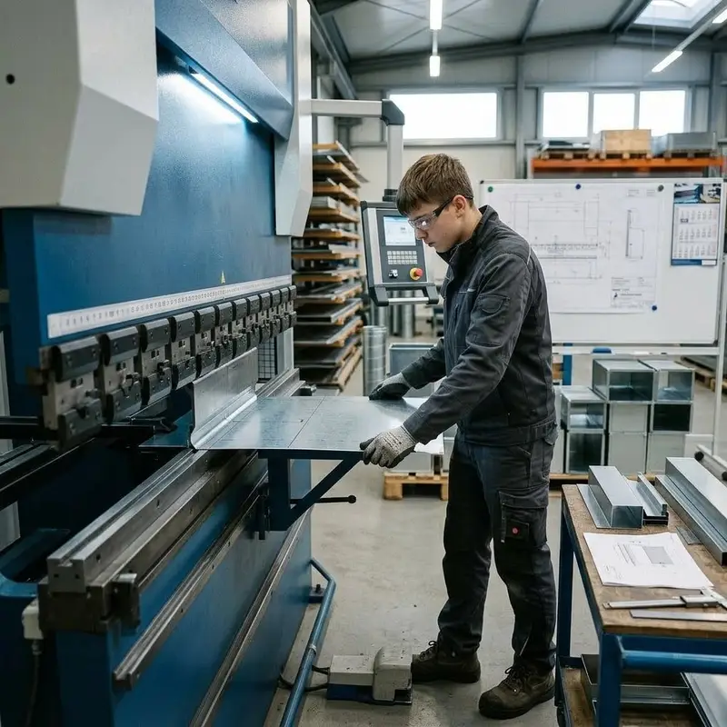 "description": "Du biegst und formst Lüftungskanäle an der Abkantbank nach Plan in der Produktionshalle.",