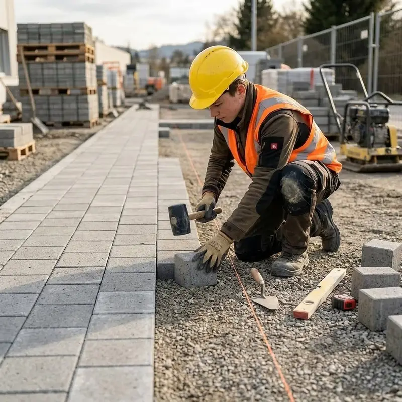 Als Steinsetzer/in EBA arbeitest du auf Baustellen und im Aussenraum mit Natur- und Kunststeinen.