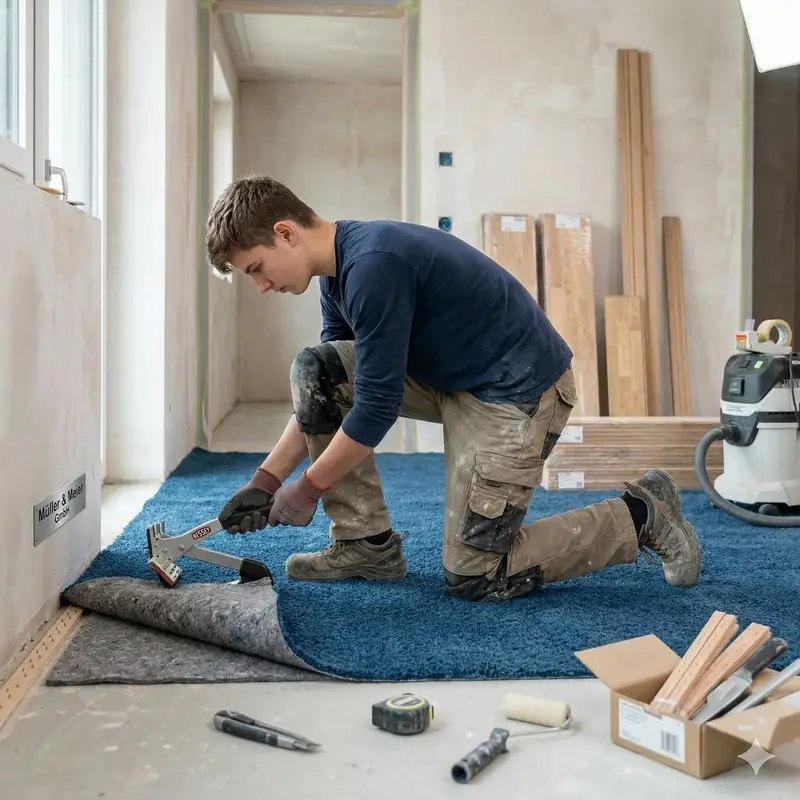 "description": "Du misst den Raum aus und schneidest Parkett- oder Bodenbahnen mit Zollstock und Cuttermesser passgenau zu.",