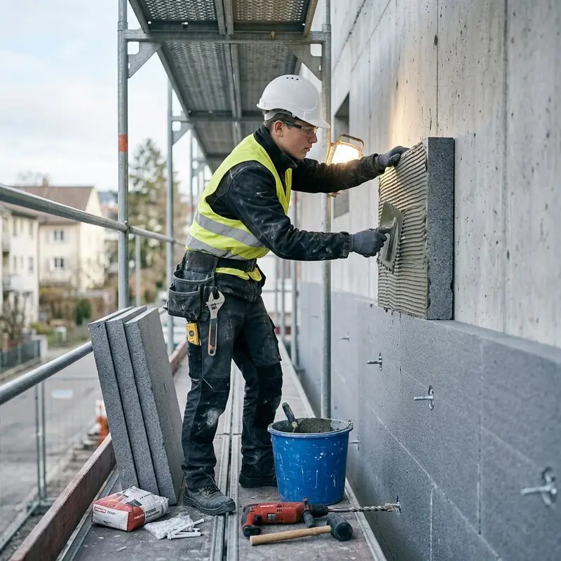 "description": "Du klebst Dämmplatten mit Mörtel an eine Aussenwand und befestigst sie mit Dübeln.",