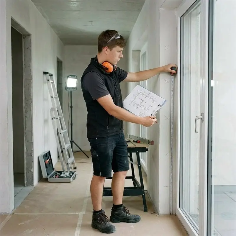 "description": "Du liest den Montageplan, misst Fenster und Türen mit Massband aus und markierst die Bohrpunkte an der Wand.",