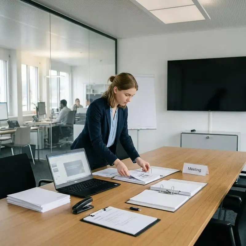 "description": "Du erstellst am Computer eine Präsentation, druckst Unterlagen aus und legst sie im Sitzungszimmer für das Meeting bereit.",