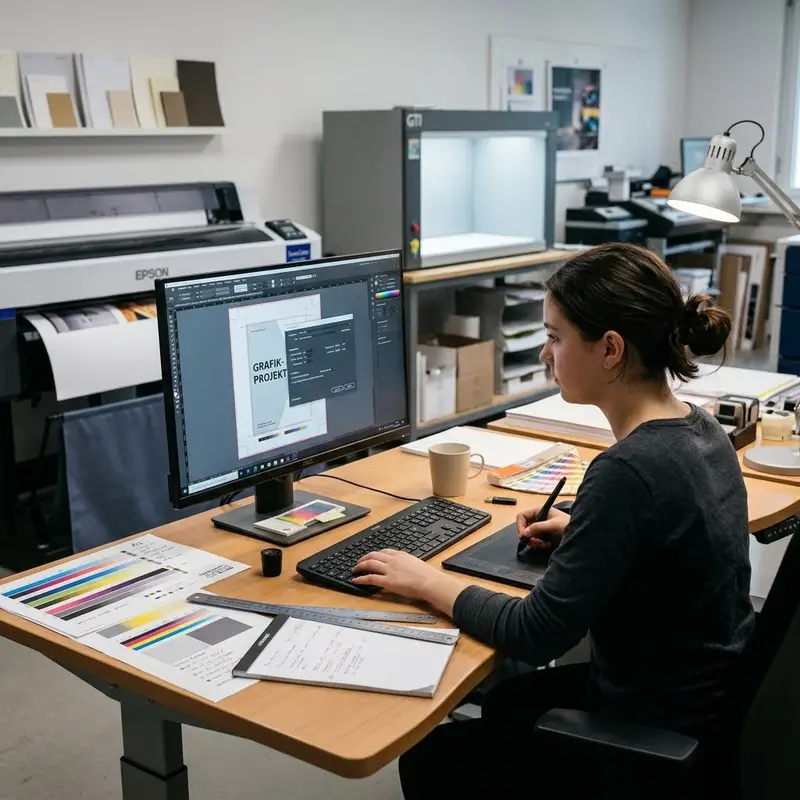 "description": "Du bereitest am Computer Layouts und Bilder in einer Grafiksoftware auf und exportierst die Druckdaten für die Produktion.",