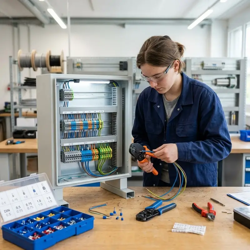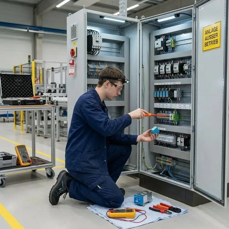 "description": "Du ziehst Kabel, crimpt Aderendhülsen und verdrahtest Sensoren, Aktoren und Klemmen im Schaltschrank.",