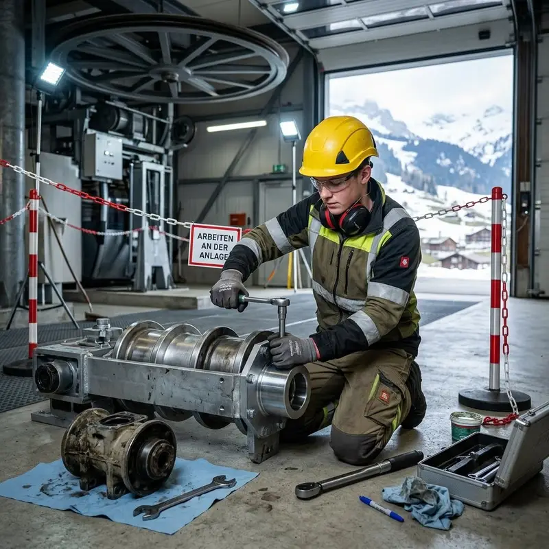 "description": "Du reinigst und schmierst Antrieb und Umlenkräder in der Maschinenhalle, damit die Seilbahn ruhig läuft.",