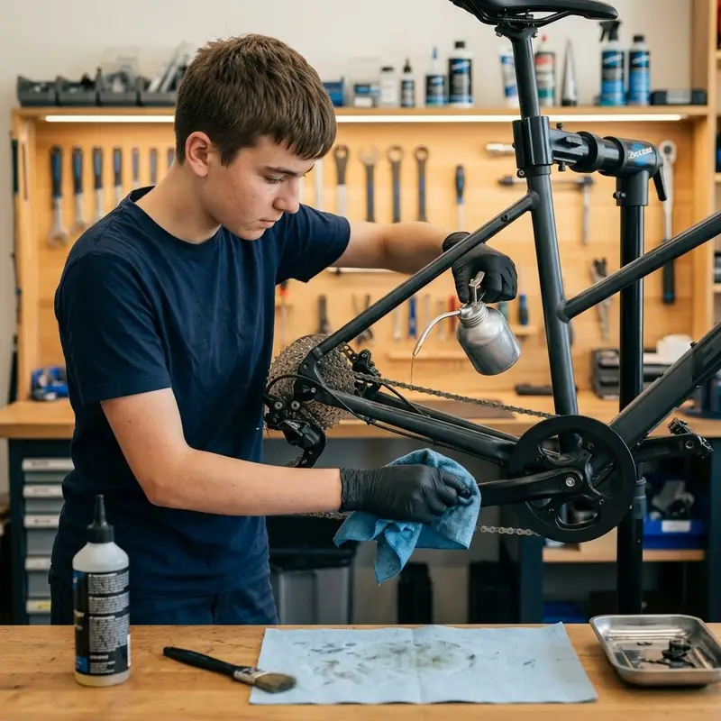 "altText": "Fahrradmechaniker/in EFZ Kette pflegen",