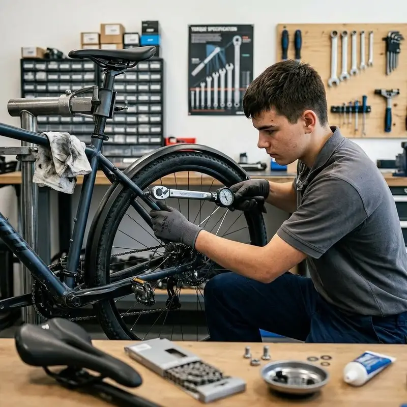 "description": "Du montierst neue Teile wie Kette, Sattel oder Schutzblech am Zweirad und ziehst die Schrauben mit Drehmomentschlüssel fest.",
