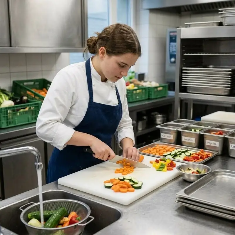Sie dauert 2 Jahre und ist der praktische Einstieg in die Kueche; danach ist oft ein Uebertritt in die EFZ-Lehre moeglich.