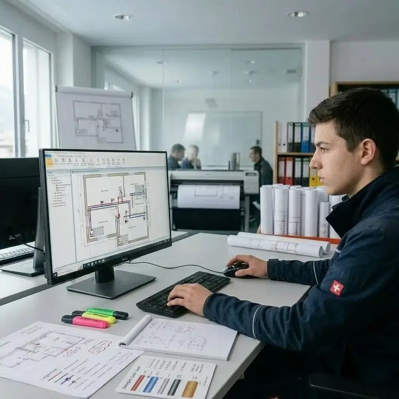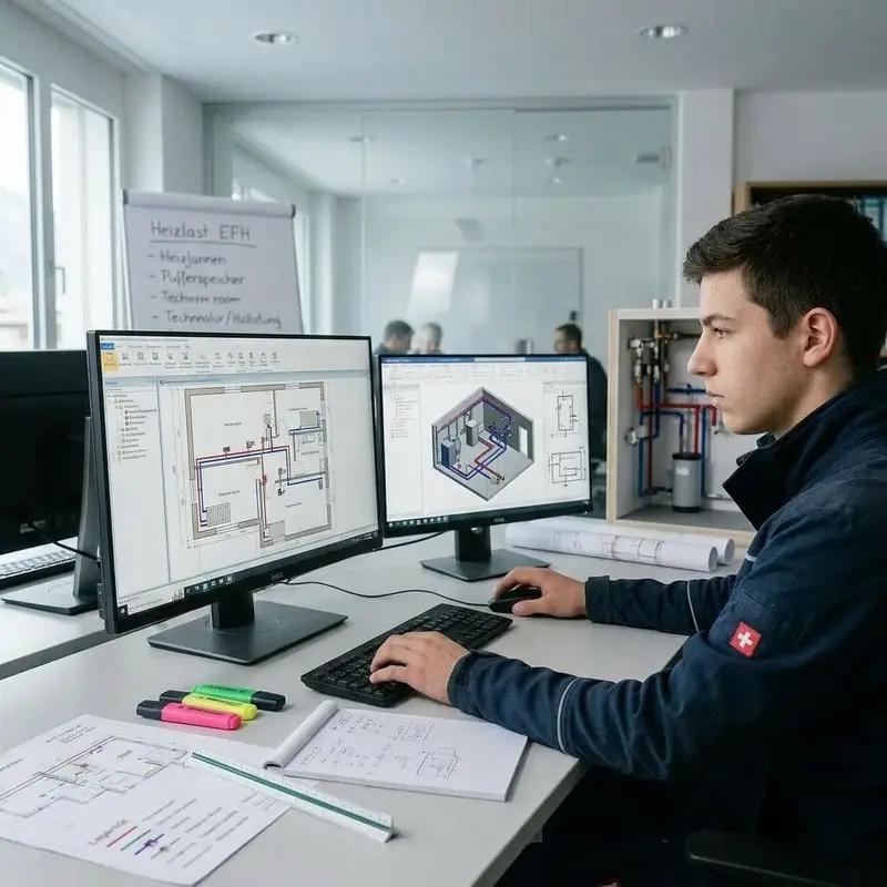 Als Gebäudetechnikplaner/in Heizung EFZ planst und zeichnest du Heizungsanlagen für Gebäude.
