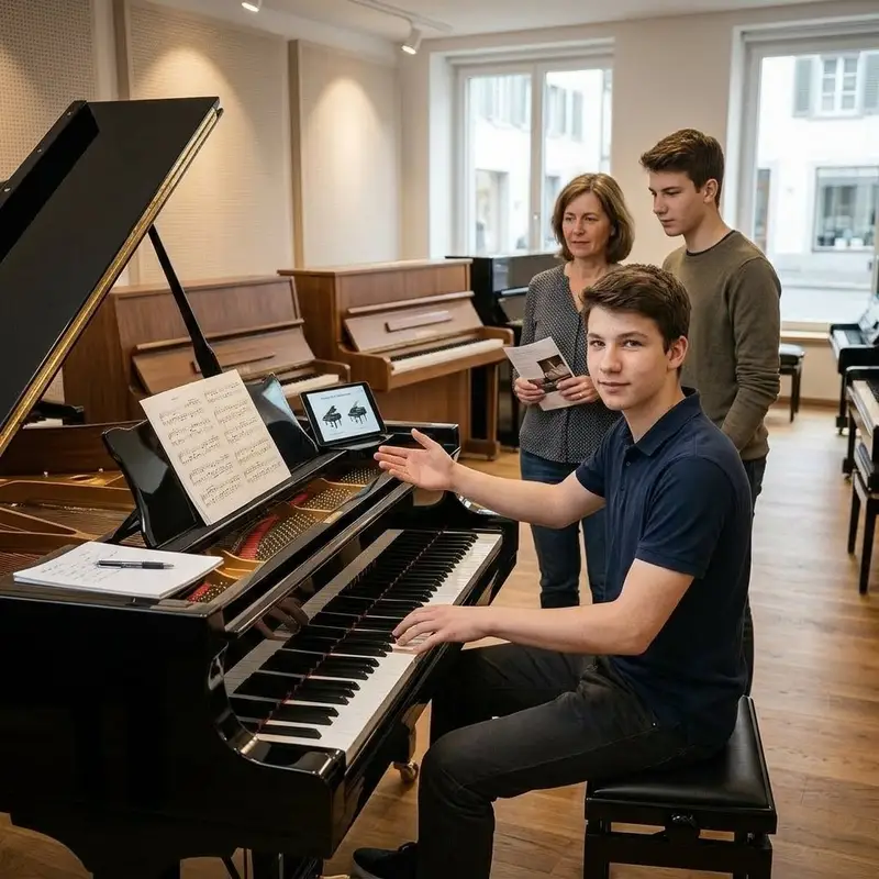 "description": "Du führst Kundinnen und Kunden im Fachgeschäft durch die Auswahl, indem du verschiedene Klaviere anspielst und Unterschiede zeigst.",