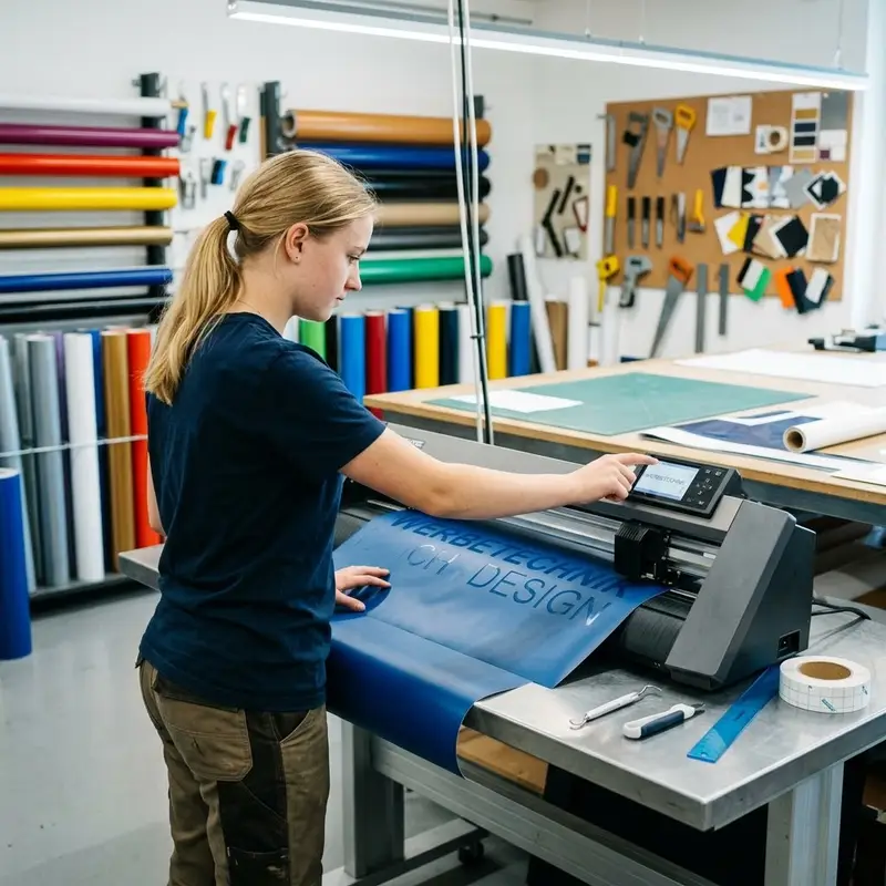 "altText": "Gestalter/in Werbetechnik EFZ Folie zuschneiden",
