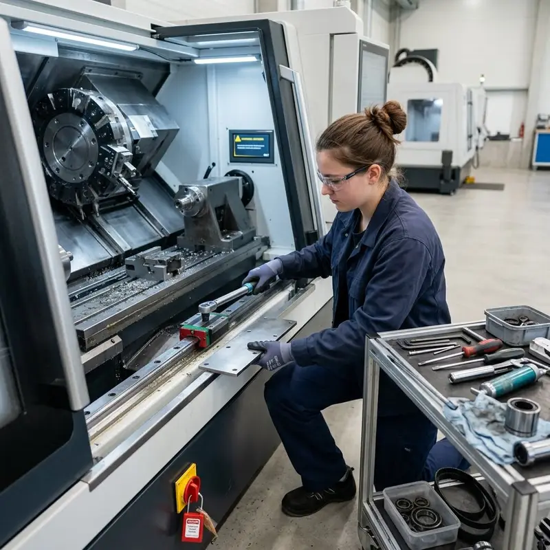 "description": "Du wechselst Verschleissteile, schmierst Führungen und behebst eine Störung an der Anlage, damit sie wieder läuft.",