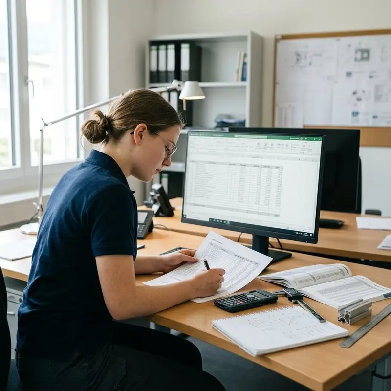 "description": "Du berechnest am Schreibtisch den Materialbedarf und trägst die Kosten in eine Kalkulationstabelle ein.",