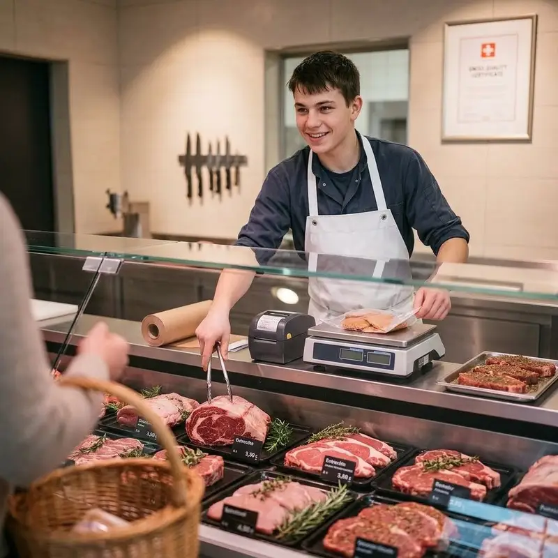"altText": "Fleischfachmann/-frau EFZ Kunden beraten",