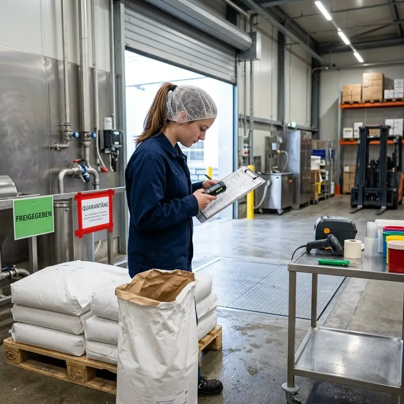 "description": "Du nimmst Säcke, Kisten oder Tanklieferungen mit Rohstoffen an, kontrollierst die Ware und stellst sie in der Produktionshalle bereit.",