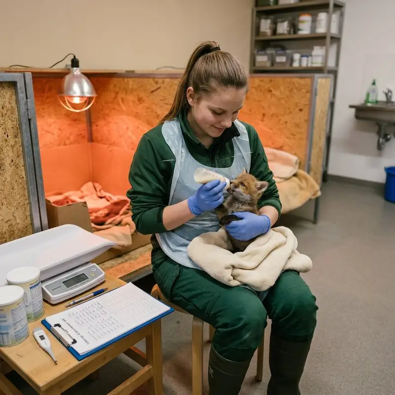 "description": "Du fütterst ein Jungtier mit der Flasche im Aufzuchtbereich und kontrollierst dabei seine Entwicklung.",