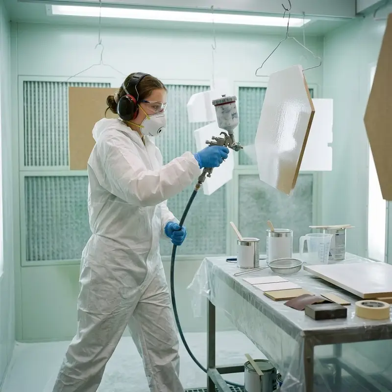 "description": "Du bemalst und lackierst die zugeschnittenen Teile in einer Spritzkabine oder am Maltisch.",
