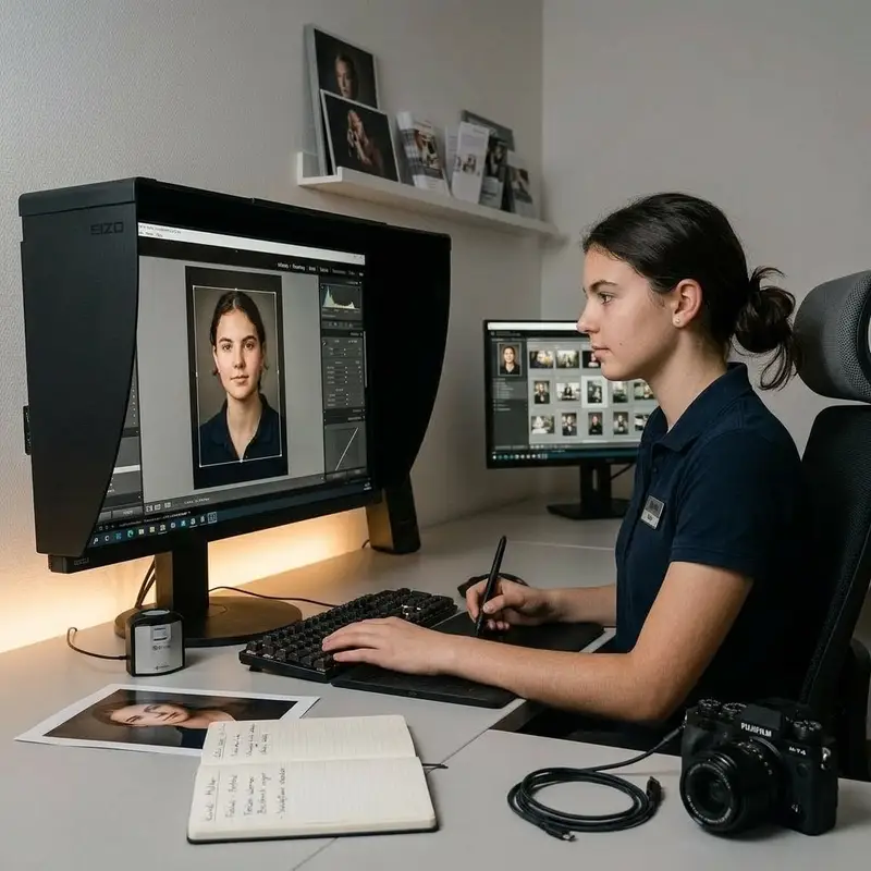 "description": "Du bearbeitest digitale Fotos am Computer mit Bildbearbeitungssoftware und passt Farben, Helligkeit und Ausschnitt an.",