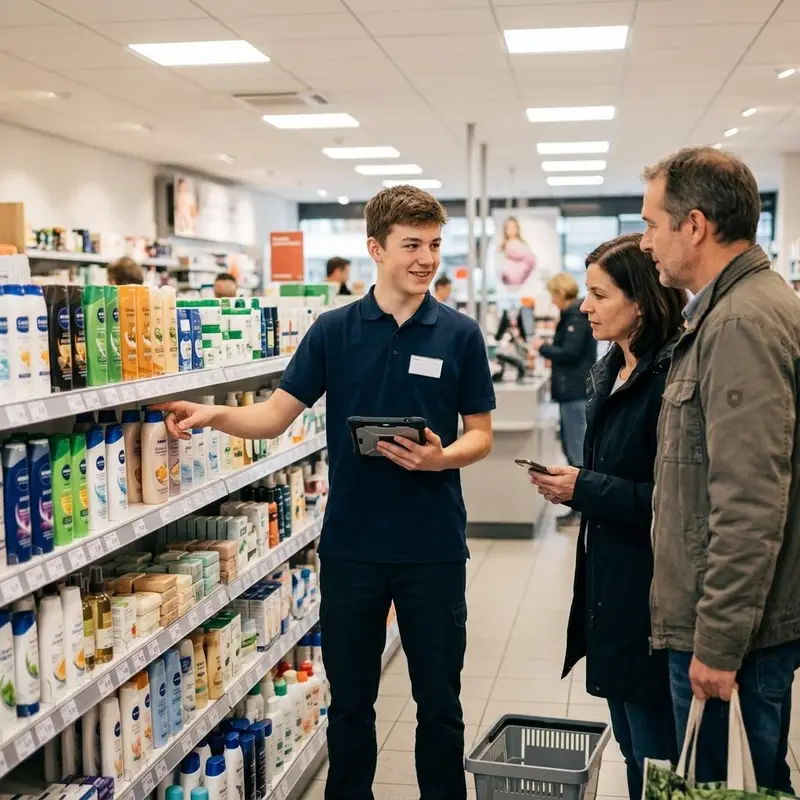 "description": "Du berätst Kundinnen und Kunden im Laden und führst sie zu den passenden Produkten im Regal.",