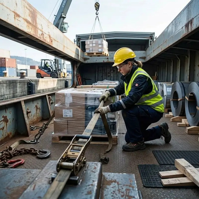 "description": "Du überwachst im Laderaum das Beladen mit Kran oder Gabelstapler und sicherst die Ladung mit Gurten und Keilen gegen Verrutschen.",