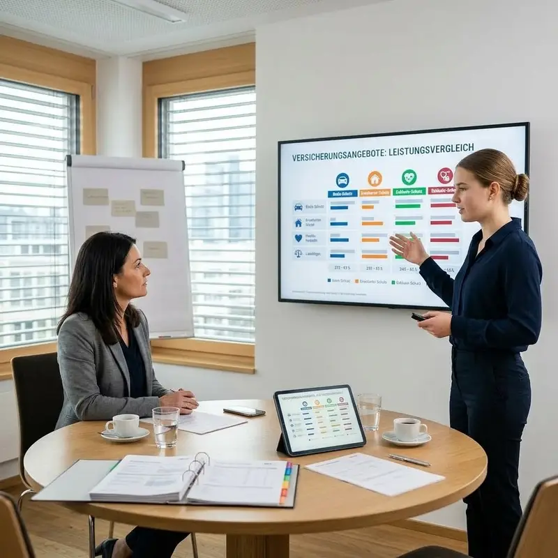 "description": "Du zeigst am Bildschirm verschiedene Versicherungsofferten und erklärst die Leistungen anhand von Unterlagen und Grafiken.",